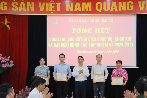Xã Tiên Du tổng kết công tác bầu cử đại biểu Quốc hội khóa XVI và đại biểu HĐND các cấp, nhiệm kỳ 2026–2031