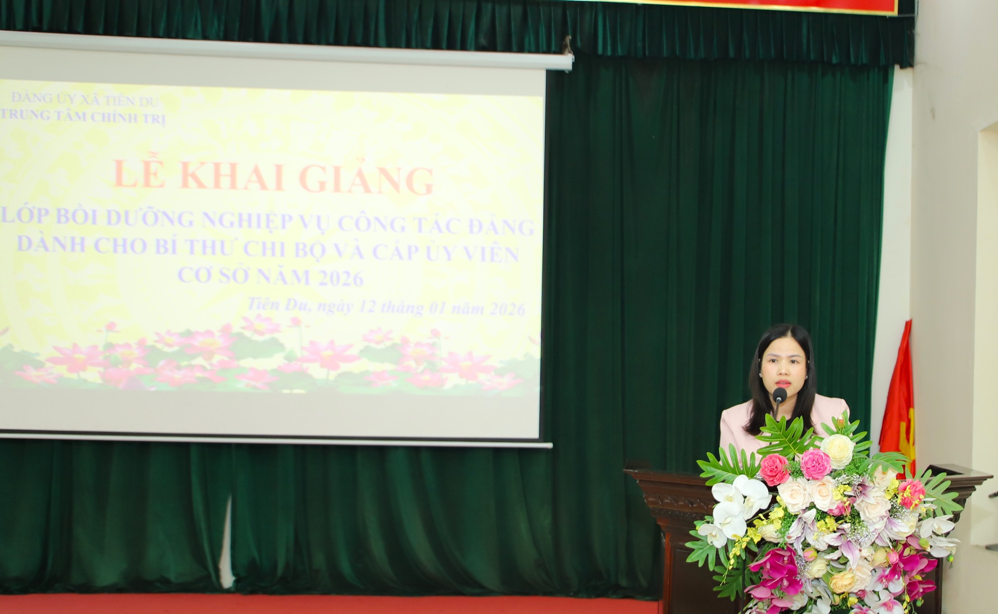 Sáng 12/01/2026, Trung tâm Chính trị Tiên Du tổ chức khai giảng lớp bồi dưỡng nghiệp vụ công tác Đảng dành cho đội ngũ Bí thư chi bộ và cấp ủy viên cơ sở năm 2026. Lớp học có sự tham gia của gần 118 học viên đến từ các xã Tiên Du, Liên Bão, Đại Đồng, Phật Tích và Tân Chi.